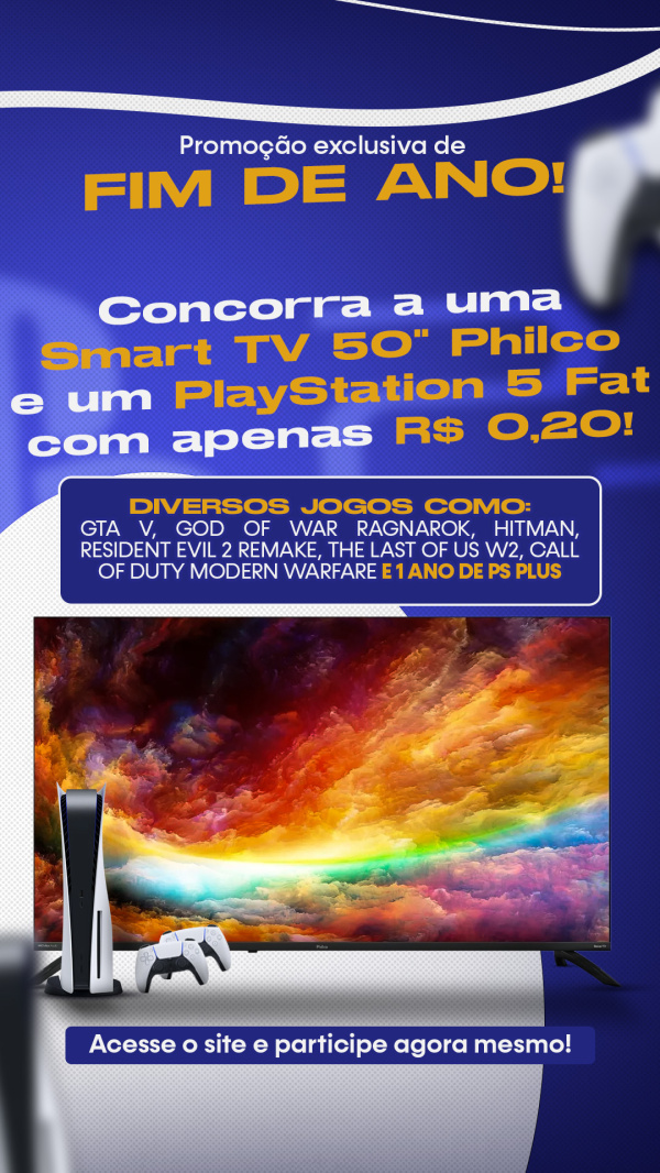 PS5 + TV 50” + 1 ANO DE PS PLUS + JOGOS TOP 🔥